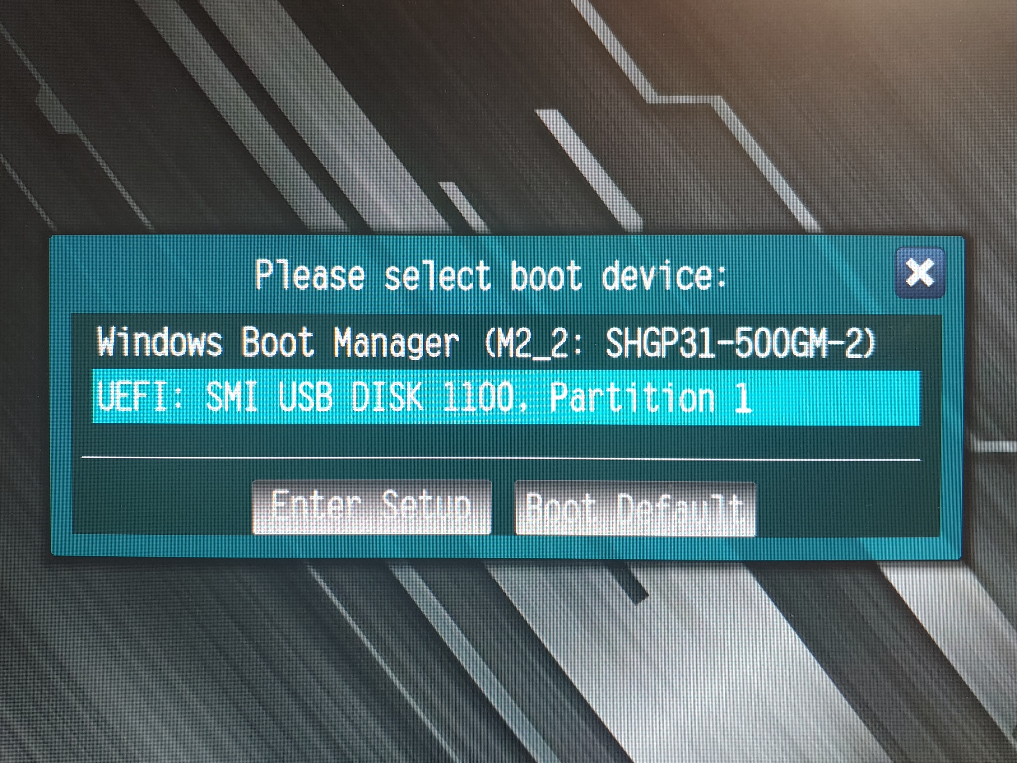 UEFI 모드에서 USB로 부팅을 하려면 둘중 하나 이상을 만족해야 한다.