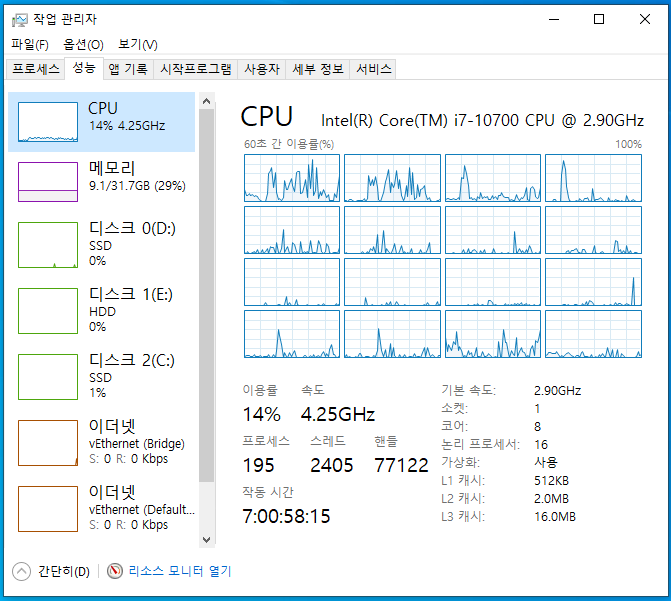 현재 내 PC가 그런 상황이다. 컴퓨터 작동 시간을 보면 일주일 전에 켜서 지금까지 작동하고 있는 것처럼 보인다. 분명 방금 컴퓨터를 켰는데도 말이다.